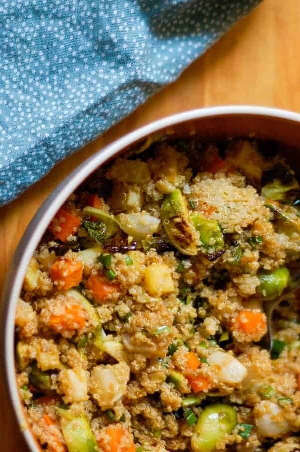 这是我最喜欢吃藜麦的方法之一,也是我一直喜欢吃的食物。姜葱酱真的让这道菜活了起来。我可以想象这样做豌豆,芦笋,蘑菇和萝卜当春季蔬菜的季节。这是伟大的,无论是温暖或在室温下,虽然我认为它失去了一些东西,它也不坏冷。如果你用tamari,这道菜不含麸质。