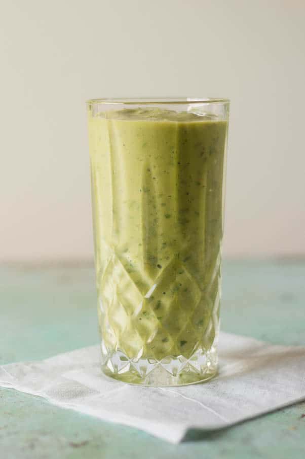 这就像几乎任何冰沙一样,是无限的适应性。如果您想要更甜,请添加更多菠萝。如果你想在桃子或油桃中换流芒果,请随时这样做。如果您在找到kefir时遇到问题,请随时使用普通酸奶或椰奶酸奶如果您避免乳制品 - 您可能需要增加更多的水来获得可倾倒的一致性。我喜欢在这个中使用Milder Kale,如白色俄罗斯或哈利纳托羽衣甘蓝,但任何羽衣甘蓝或Chard或菠菜都将起作用。如果您有一个像维他命一样的沉重搅拌机,则不需要打扰从羽衣甘蓝的肋骨。如果您有一个标准的家庭搅拌机或粘搅拌器,请务必拆下肋骨并给羽衣甘蓝粗糙。对于一些增加的瞬间的新鲜度,我有时会增加一个薄荷枝。我觉得一个小罗勒也是很好的。注意:我略微底层混合了冰沙。 Keep blending until there are no discernable flecks of green.